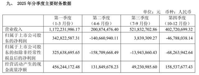 横店影视2025年Q1-Q4营收别离约11.72亿元、2.01亿元、5.22亿元、4.03亿元,归母净利润别离约3.43亿元、-1.41亿元、383.93万元、-4678.8万元。对此,横店影视方面示意,电影行业二季度、四季度多量是淡季,尤其是二季度,4、5、6三个月也莫得一个相当好的档期,因为咱们电影主要靠沐日档期来带动破钞。